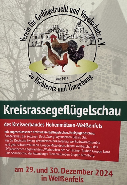Kreisschau mit Sonderschauen der Altenburger Trommeltauben Gruppe Altenburg und der seltenen Deutschen Zwerg-Wyandotten Bez. Ost vom 29-30.12.2022 in Weißenfels